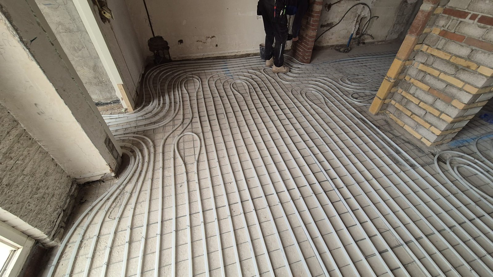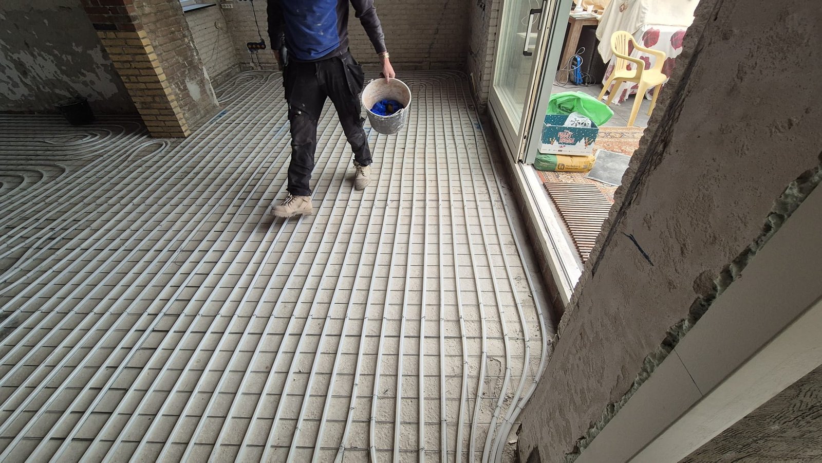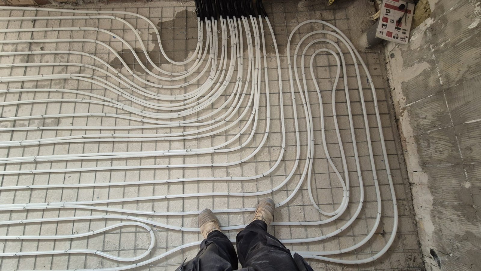 Installatie van vloerverwarming op krimpnetten