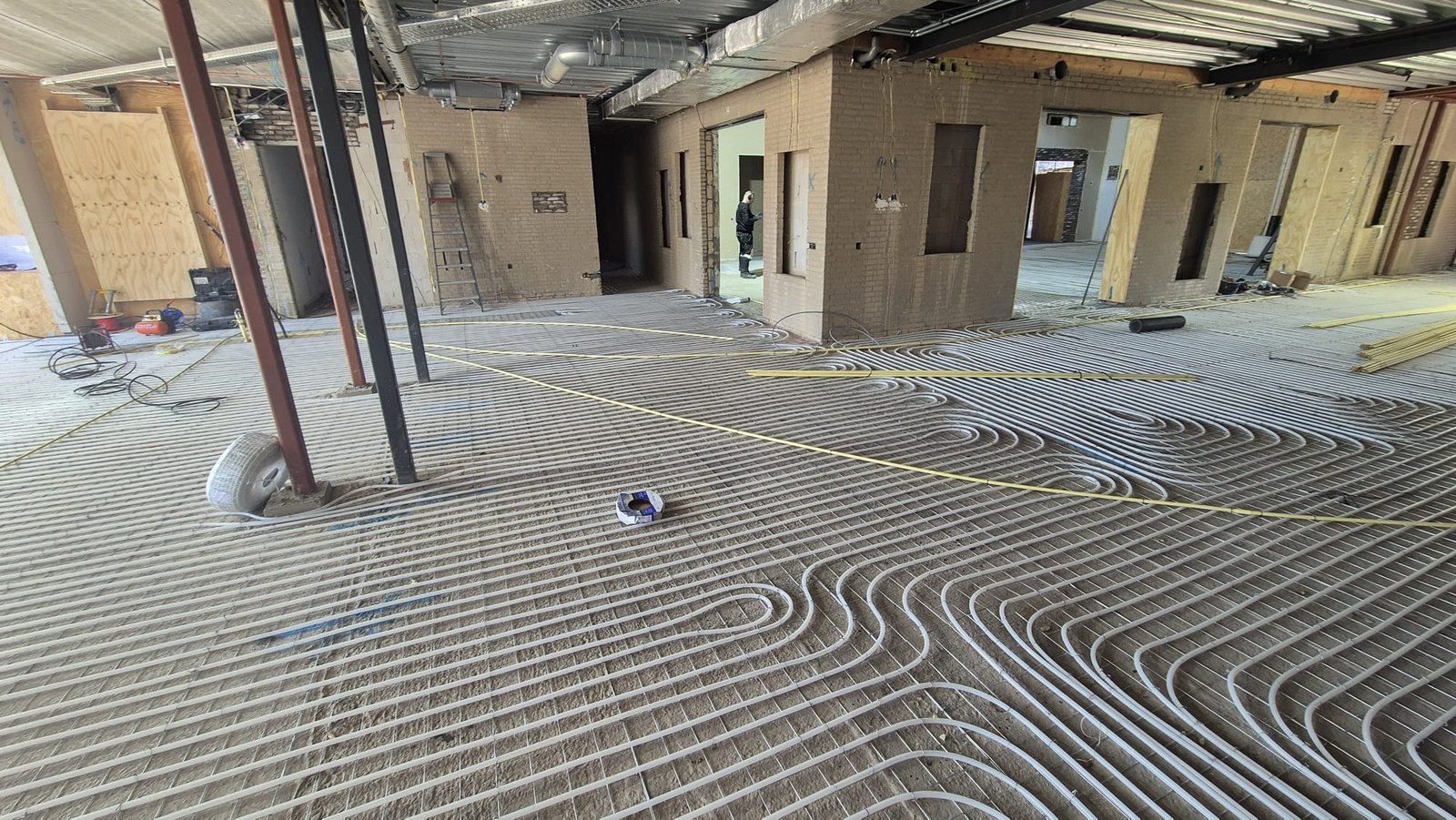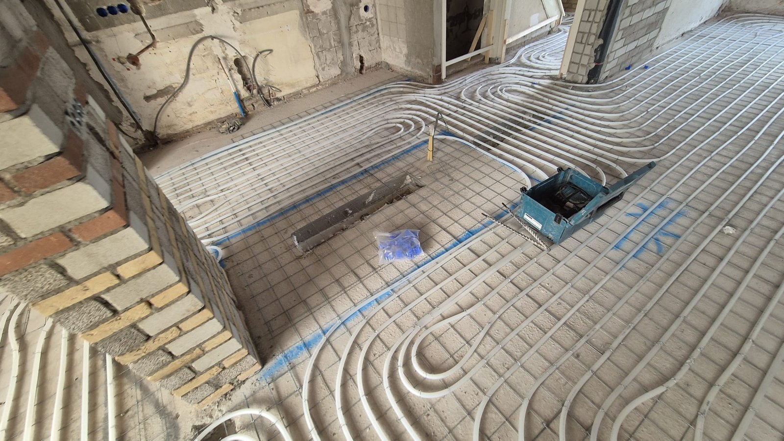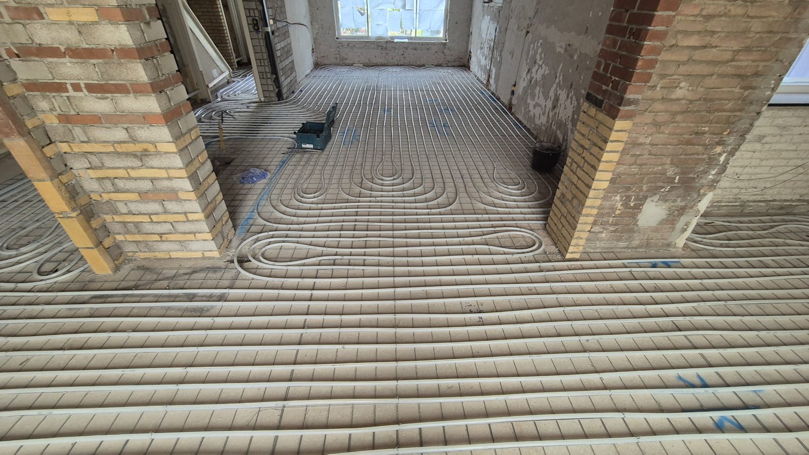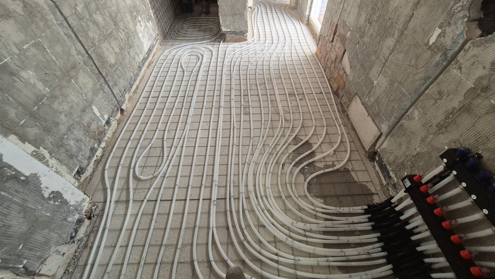 Installatie van vloerverwarming op krimpnetten