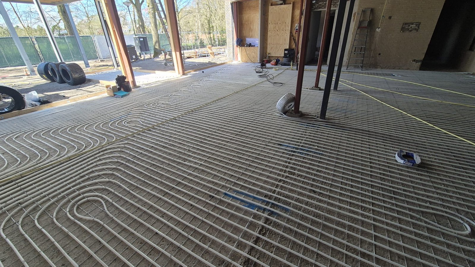 Deze methode is uitermate geschikt voor situaties waar een sterke, stabiele basis gewenst is. De verwarmingsbuizen worden op stalen netten bevestigd, wat zorgt voor een solide systeem met een gelijkmatige warmteverdeling.